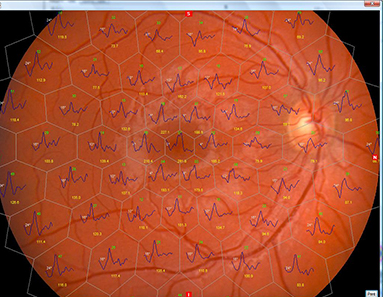 The image of the retinal fundus provided by COBRA+ can be combined with the multifocal ERG test, performed with the RETIMAX device. This new module provides a precise indication of the functionality of every analysed retinal area; it is very useful for the diagnosis and follow-up of Macular Degeneration as well as degenerative hereditary retinal diseases.